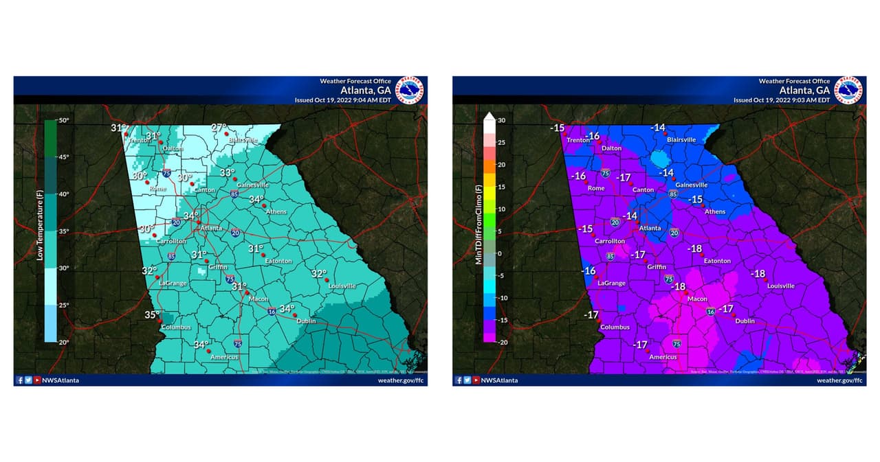 Diversos condados en el norte de Georgia permanecerán bajo un aviso de congelación que entrará en vigor la noche de este miércoles y la mañana del jueves. Este miércoles se registraron temperaturas históricamente bajas.