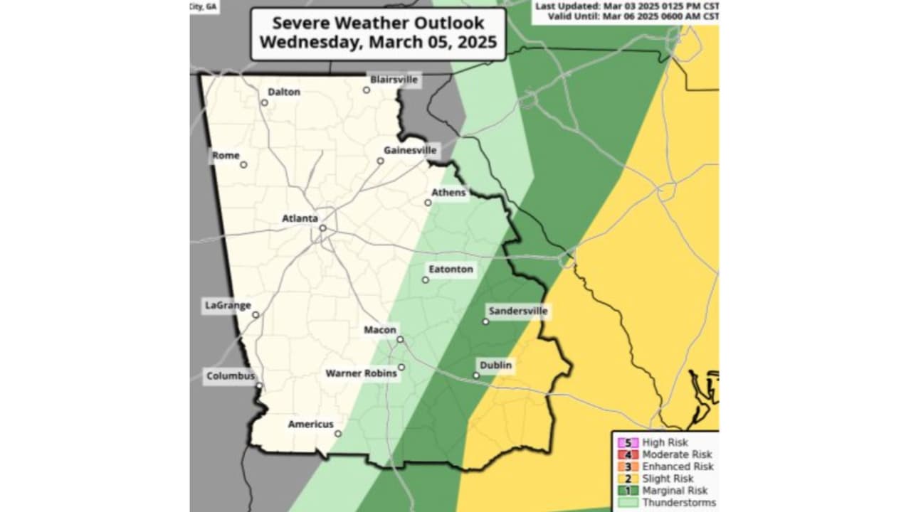 Tormentas eléctricas y vientos dañinos en Georgia: cuándo llegará el tiempo severo a tu región