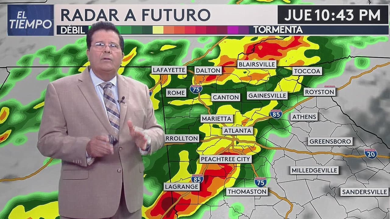 “A las 10:43 p.m. estará lloviendo en todo Metro Atlanta, aquí puede haber tormentas”, dijo el meteorólogo Eduardo Rodríguez.