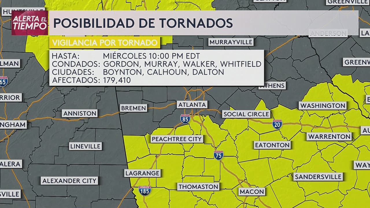 ATLANTA, Georgia. - El Servicio Meteorológico Nacional (NWS) emitió una nueva vigilancia por tornados para varios condados en el norte de Georgia. Estos se suman a la lista inicial de decenas de condados informada por la mañana.