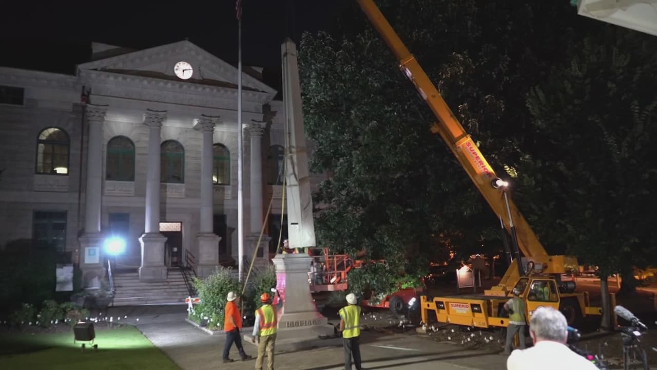 Un controvertido monumento confederado es removido de la plaza del centro de Decatur