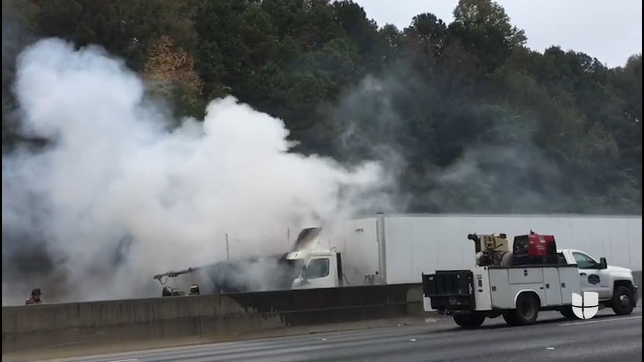 Un trailer se incendia luego de chocar contra un camión en la I-285