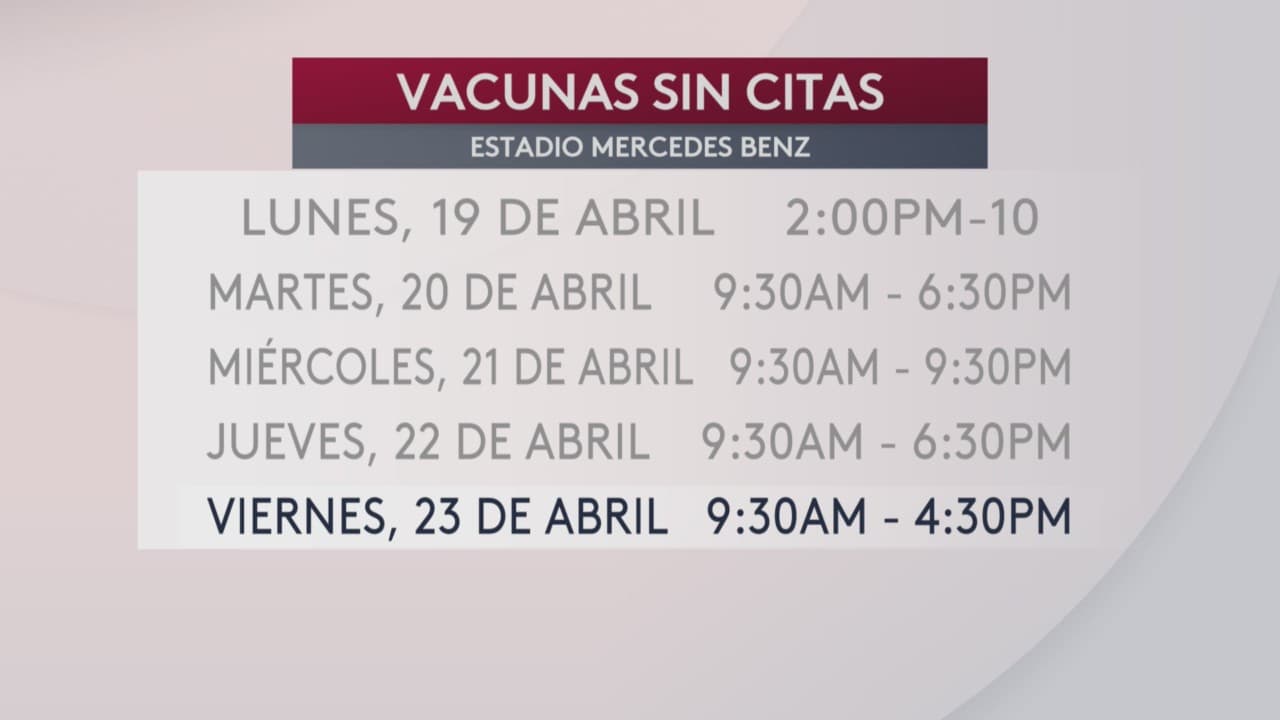 El estadio Mercedes-Benz, el sitio de vacunación masiva más grande de Georgia comienza a administrar la vacuna de Pfizer contra el coronavirus sin previa cita desde este lunes y hasta el viernes.
