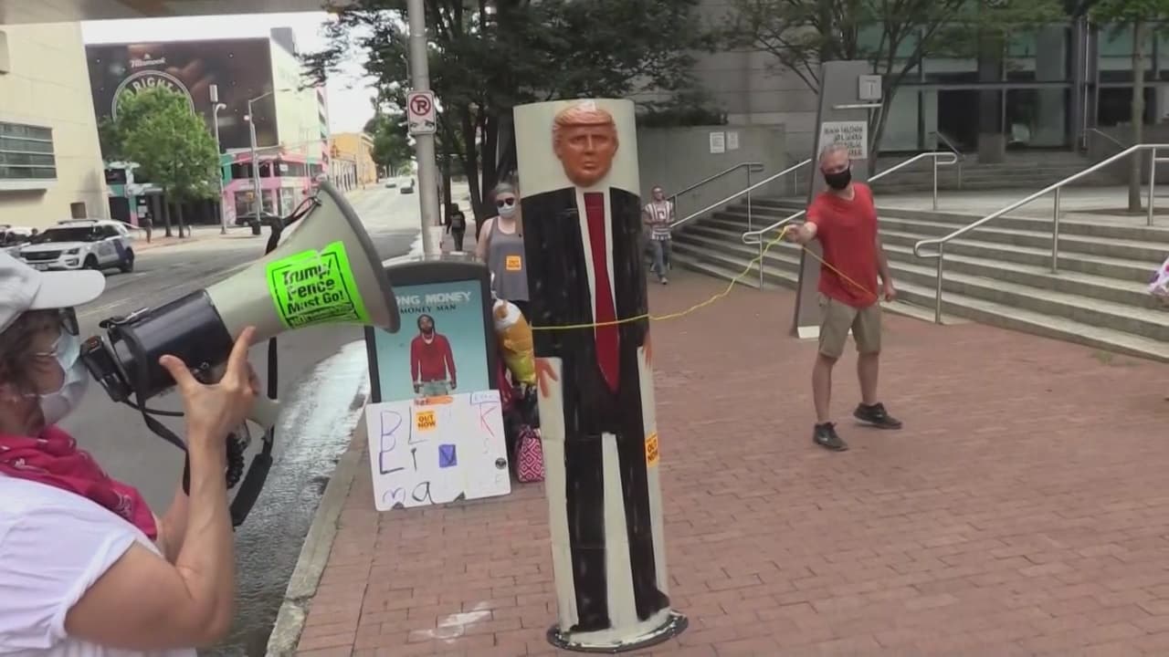 Varias docenas de personas protestaron en el centro de Atlanta tras la visita del presidente Donald Trump