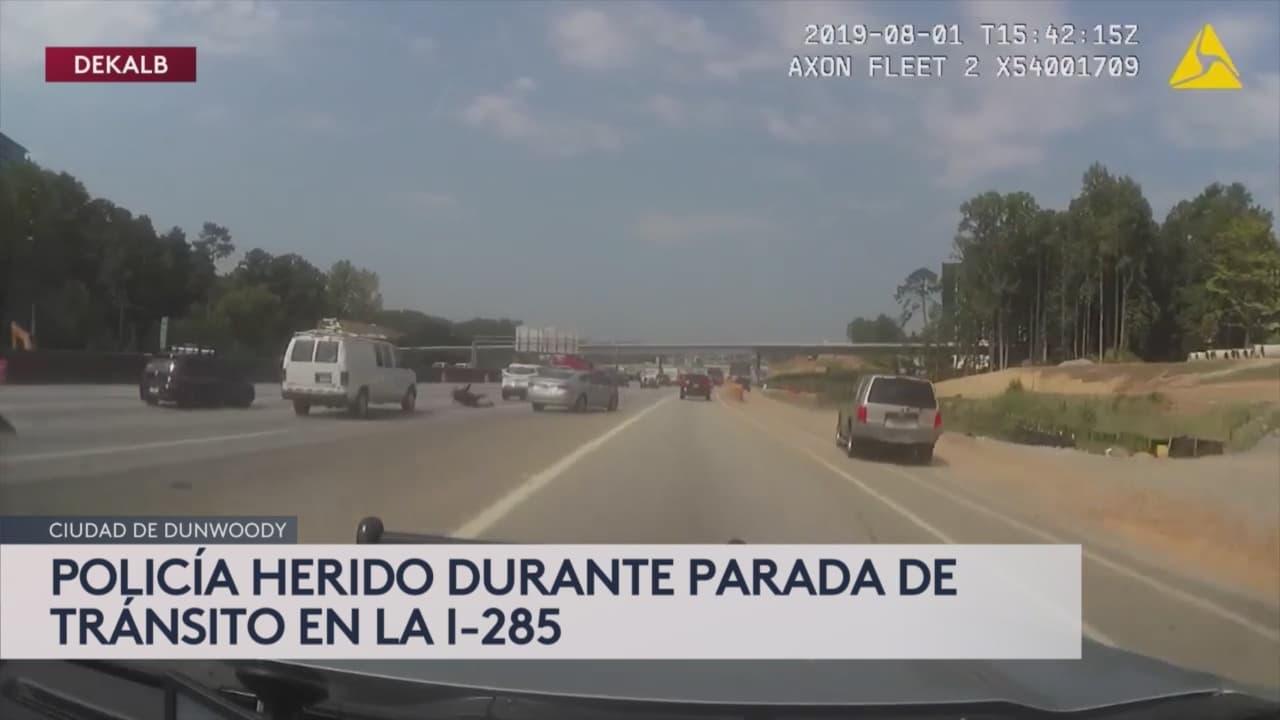 Un hombre que se dio a la fuga luego de una parada de tráfico en Georgia lesionó a un policía que se agarró al auto del sospechoso y terminó sobre la carretera Interestatal 285. El sujeto fue detenido poco después.
