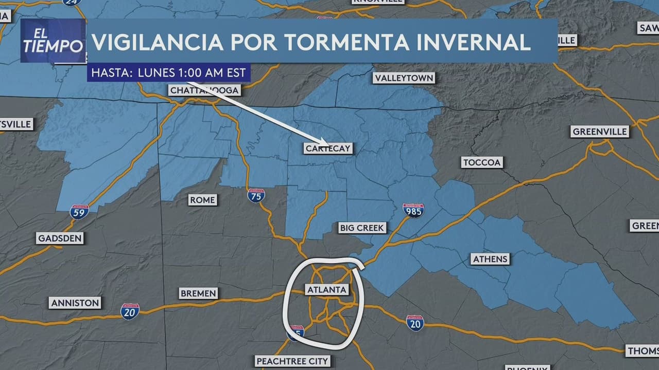 Actualmente la región de Metro Atlanta cuenta con una advertencia por tiempo invernal, lo que significa que se calcula la formación de un décimo de pulgada de formación de hielo y hasta una pulgada de nieve, indicó el meteorólogo.