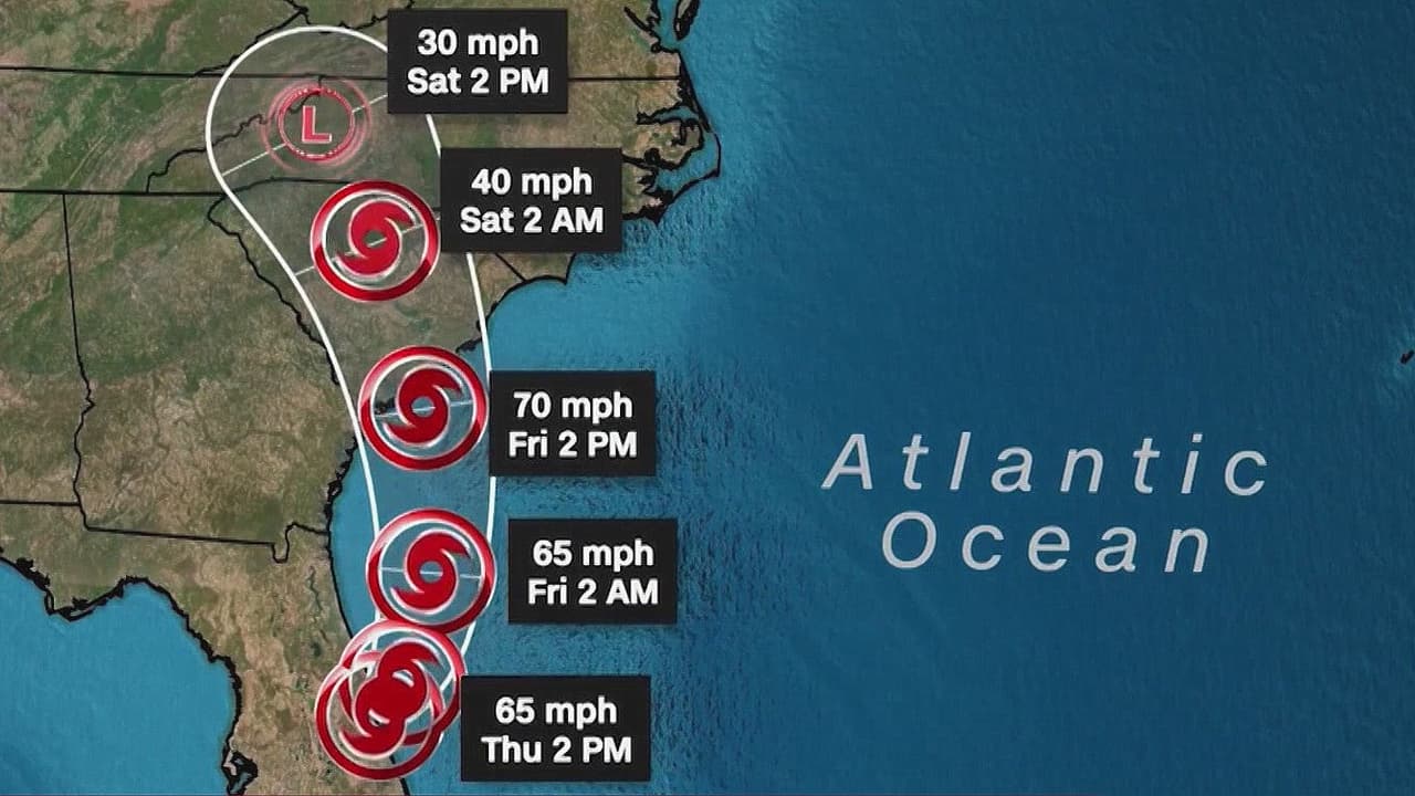 El cambio en la trayectoria de Ian hacia el este disminuyó la cantidad de lluvia que se espera en Georgia.