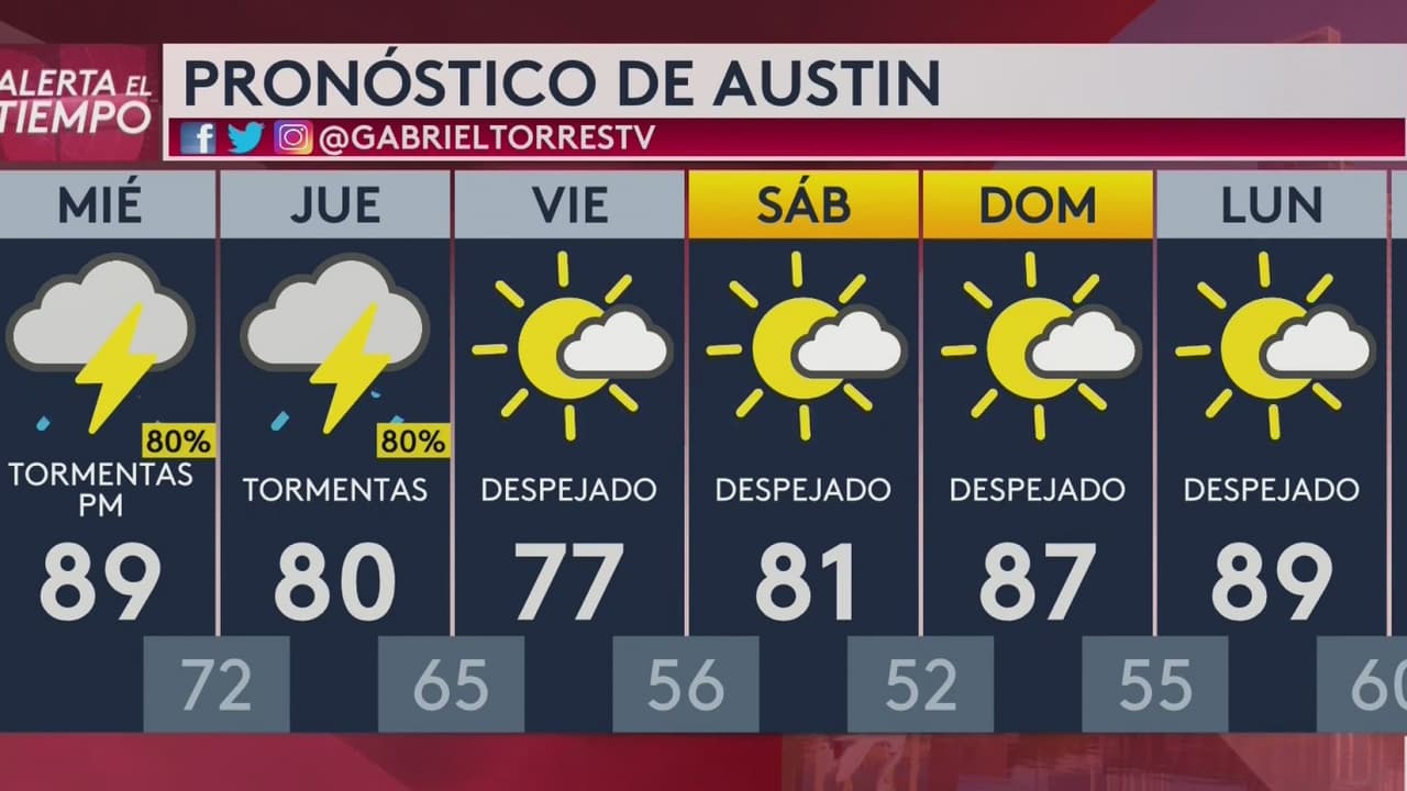 Prepárese para un miércoles con un incremento en la nubosidad, alto potencial de tormentas severas y riesgo de granizo para el condado Travis mientras el mercurio se mantiene con temperaturas cálidas con máximas de hasta 89°F.