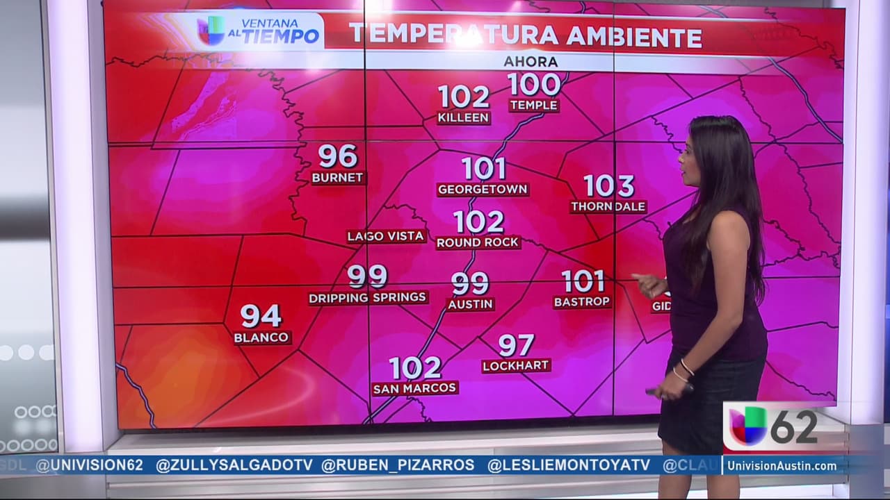 El termómetro alcanzo temperaturas máximas por encima de los tres dígitos en la región, para este miércoles se miércoles se espera alcanzar una máxima de 102 grados en Austin, 103 en George Town y 104 en Tempe. Manténgase hidratado.