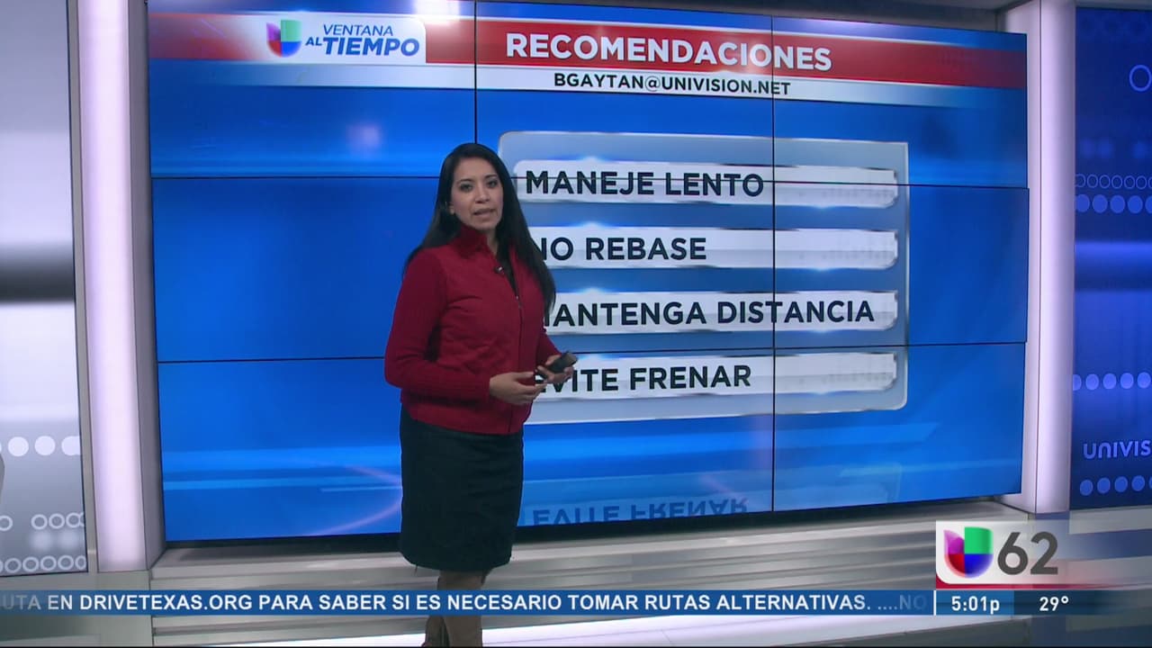 Los Servicios de Emergencia del condado Travis, así como la Policía de Austin y el Departamento de Bomberos de la ciudad informaron que se registra un incremento en el número de accidentes vehiculares desde las 6:30 a.m. por lo que pidieron a la población limitar sus recorridos a situaciones de emergencia.