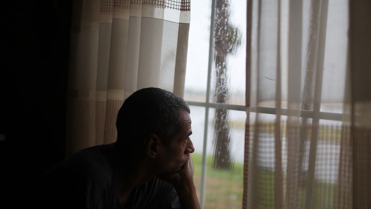 Los fuertes vientos y las lluvias por el huracán Harvey tumbaron un árbol que impactó uno de los postes de electricidad.