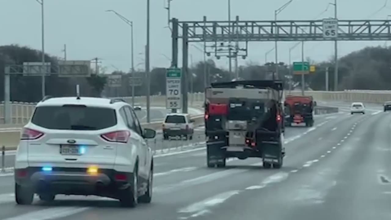 Autoridades de transporte de Texas señalan que aunque trabajan para mantener las carreteras seguras, no se tienen las mejores condiciones para manejar debido al hielo negro, por lo que insisten en que no salgas de casa si no es necesario.