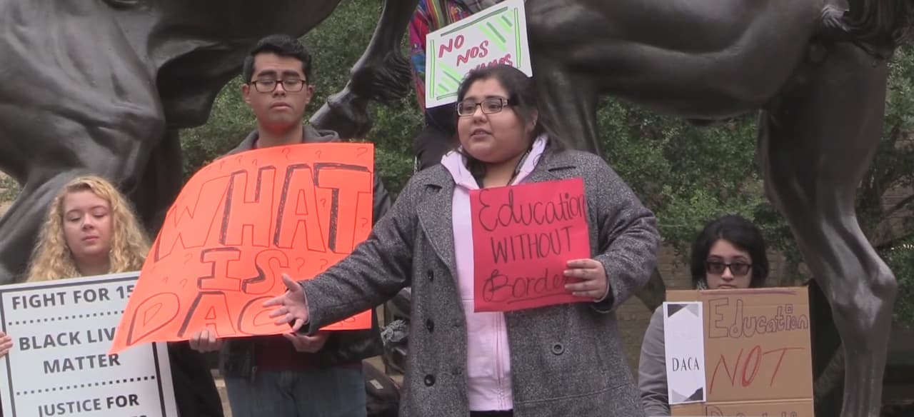 Alumnos de la universidad de Texas State en San Marcos manifiestan su apoyo a los estudiantes indocumentados