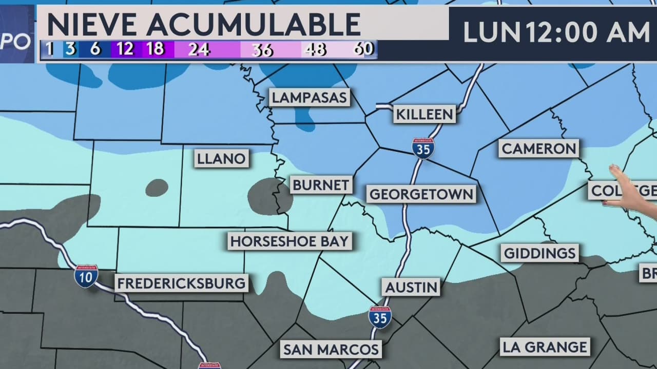 Un frente frío traerá una posibilidad de precipitación invernal para el centro de Texas. Algunas regiones podrían registrar una acumulación de nieve.