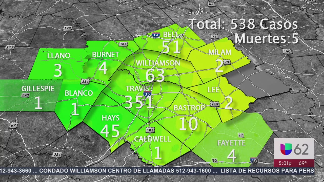 Austin Public Health anunció que se han registrado 351 casos en la capital de Texas. En nuestra zona de cobertura, 5 personas han perdido la vida.