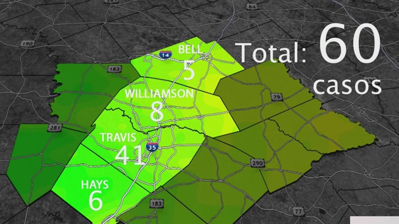 Según las ultimas cifras se reportan 6 casos en el condado Hays, 41 en el condado Travis, 8 en el condado Williamson y 5 en Bell sumando un total de 60 casos positivos de Covid-19.