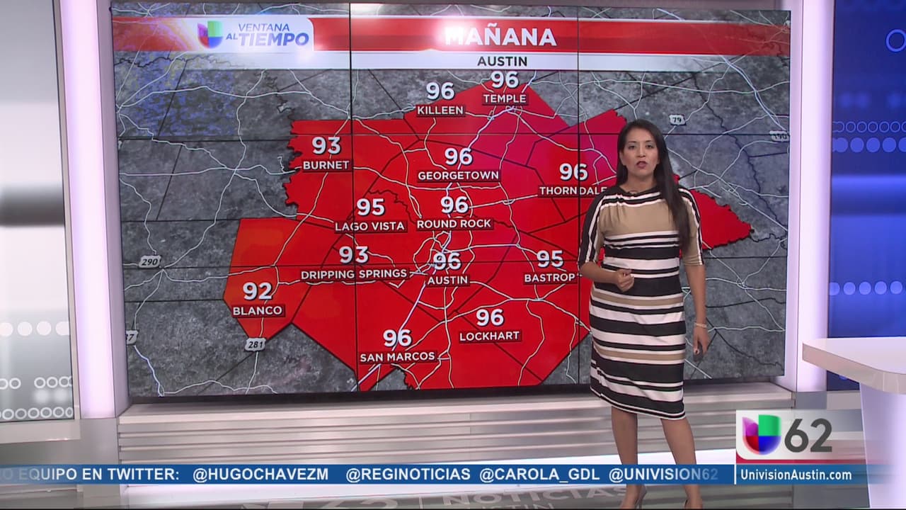 Un inicio de semana con humedad abundante en la región con temperaturas máximas de 96 grados para este martes en Austin, pero con un índice de calor de 104 grados. Manténgase hidratado.