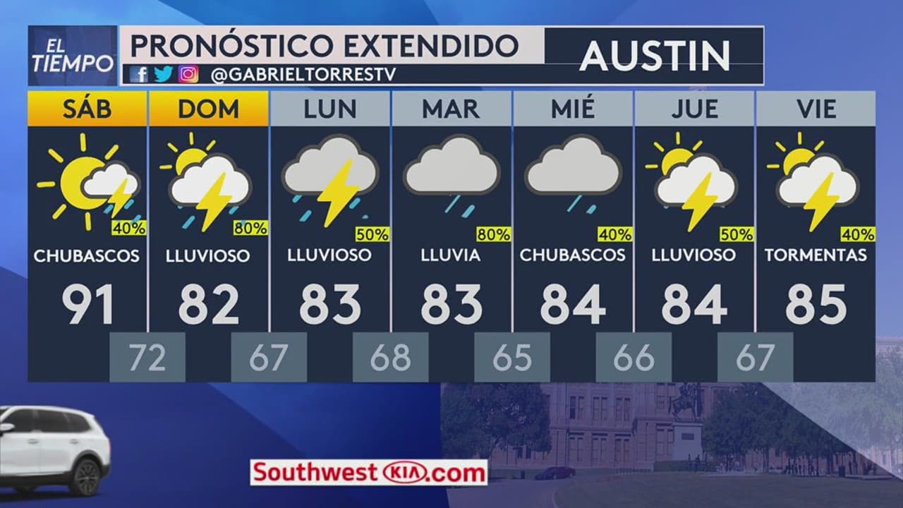 No guarde su paraguas porque las lluvias continuarán este fin de semana con temperaturas máximas de 91 grados Fahrenheit para el sábado y de 82 grados para el domingo.