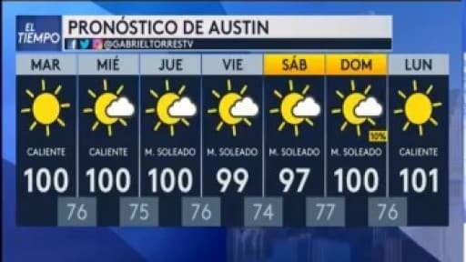 Prepárese para una semana muy calurosa en el área de cobertura, para este martes en la capital texana se espera una máxima de 100 grados Fahrenheit.