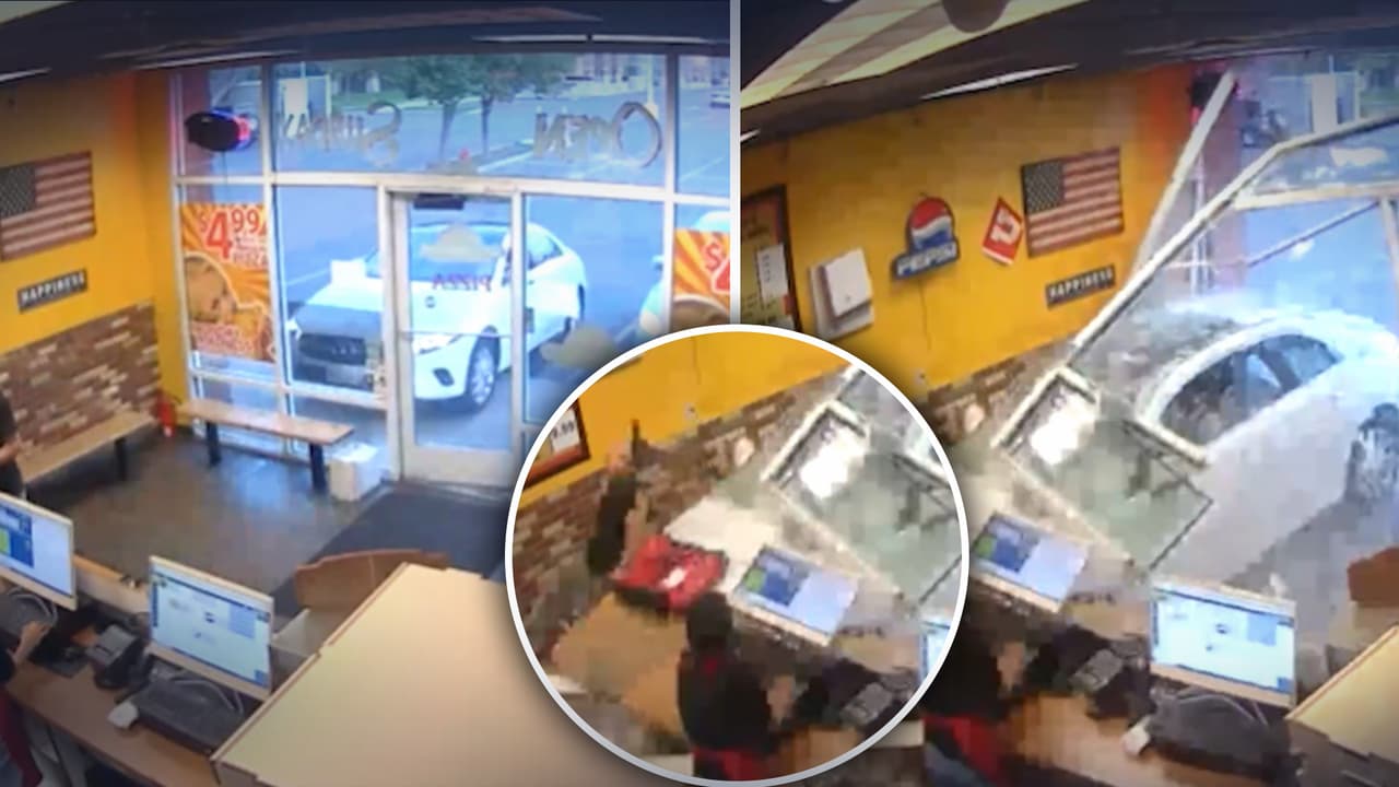 Un auto atropella a un repartidor dentro de una pizzería en Sandy