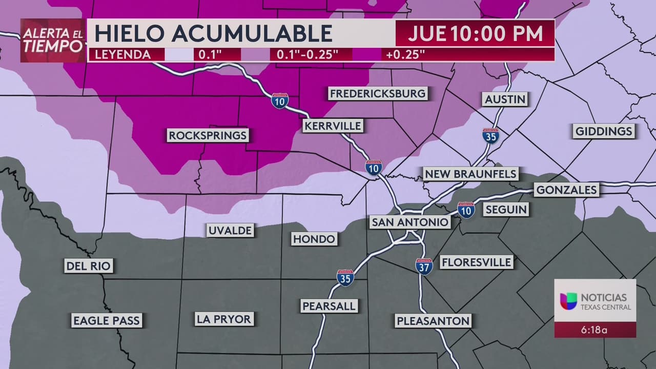 Viajar podría ser muy difícil en caminos no tratados, especialmente en puentes elevados, pasos elevados y carreteras. Según el pronóstico, los impactos en las carreteras comienzan en Hill Country a la medianoche del miércoles y en el área metropolitana de Austin y los condados del este antes del amanecer del jueves.