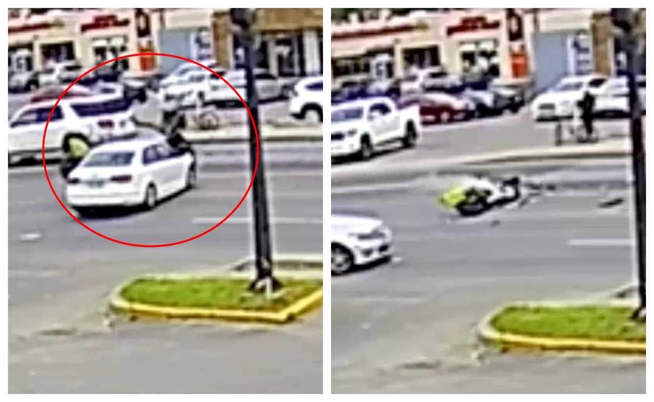 Captan en video momento en que conductor atropella a motociclista y huye de la escena