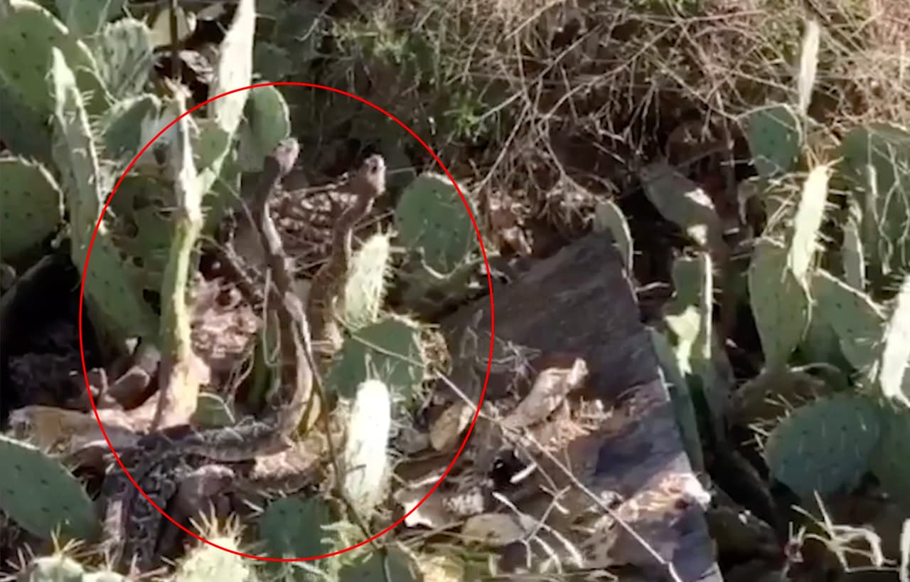 Captan video de dos serpientes cascabel peleando en un parque de Texas