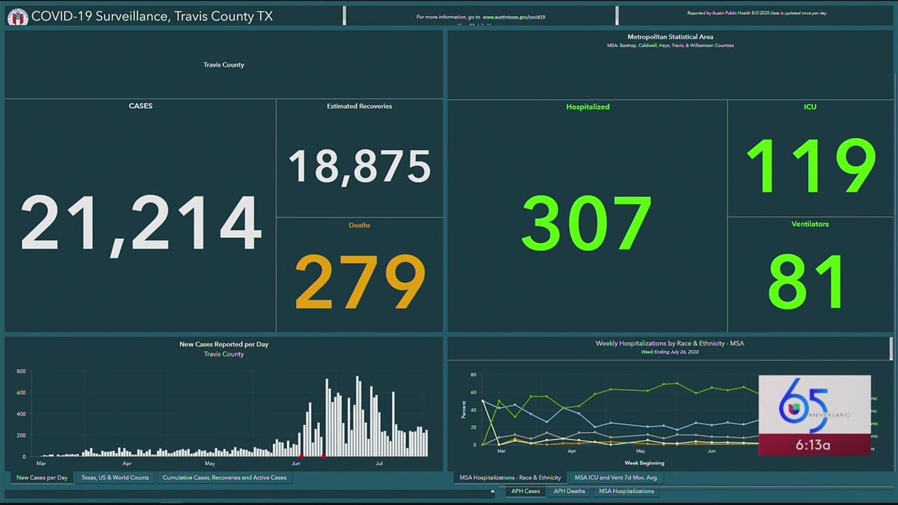 Asimismo, se informó que se han reportado 279 muertes por complicaciones con el virus y al menos 18,875 personas se han recuperado. De los casos confirmados, un 50% son pacientes hispanos. Según los últimos datos del condado Austin-Travis, un 52% de las hospitalizaciones son de la comunidad hispana.