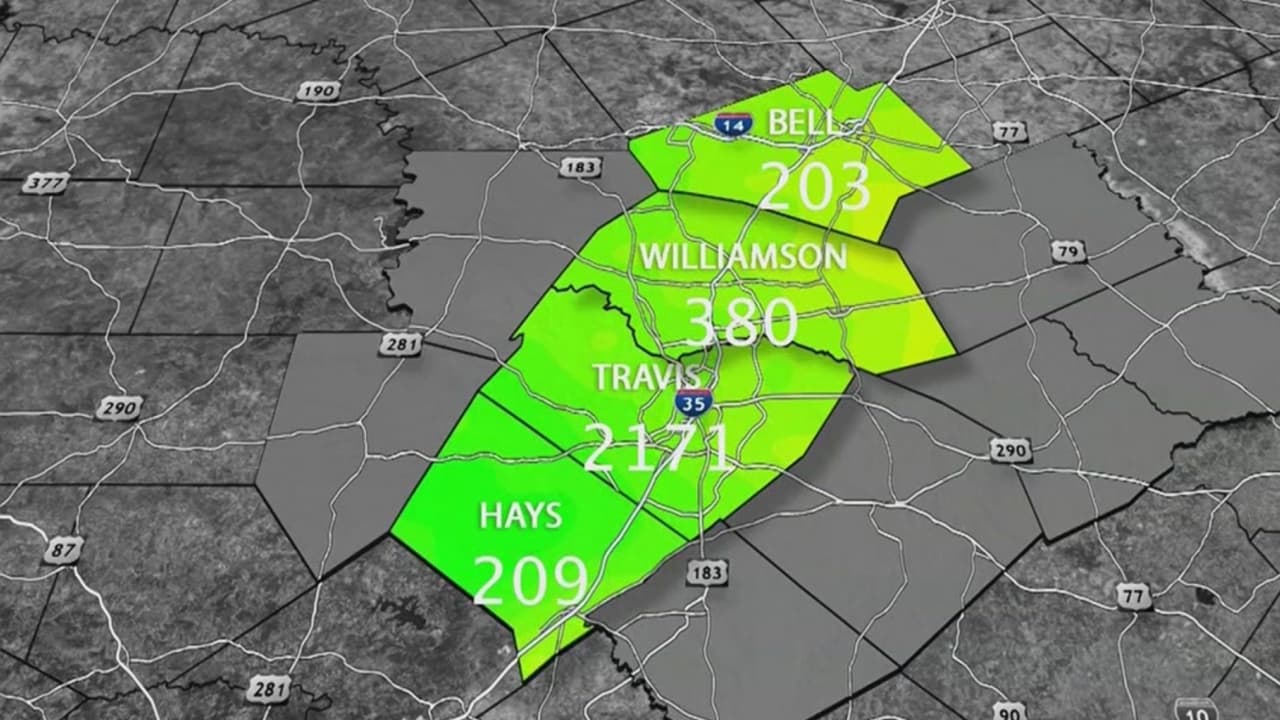 Le presentamos un mapa con las cifras actualizadas de los casos confirmados de coronavirus en los condados cercanos a la capital de Texas.