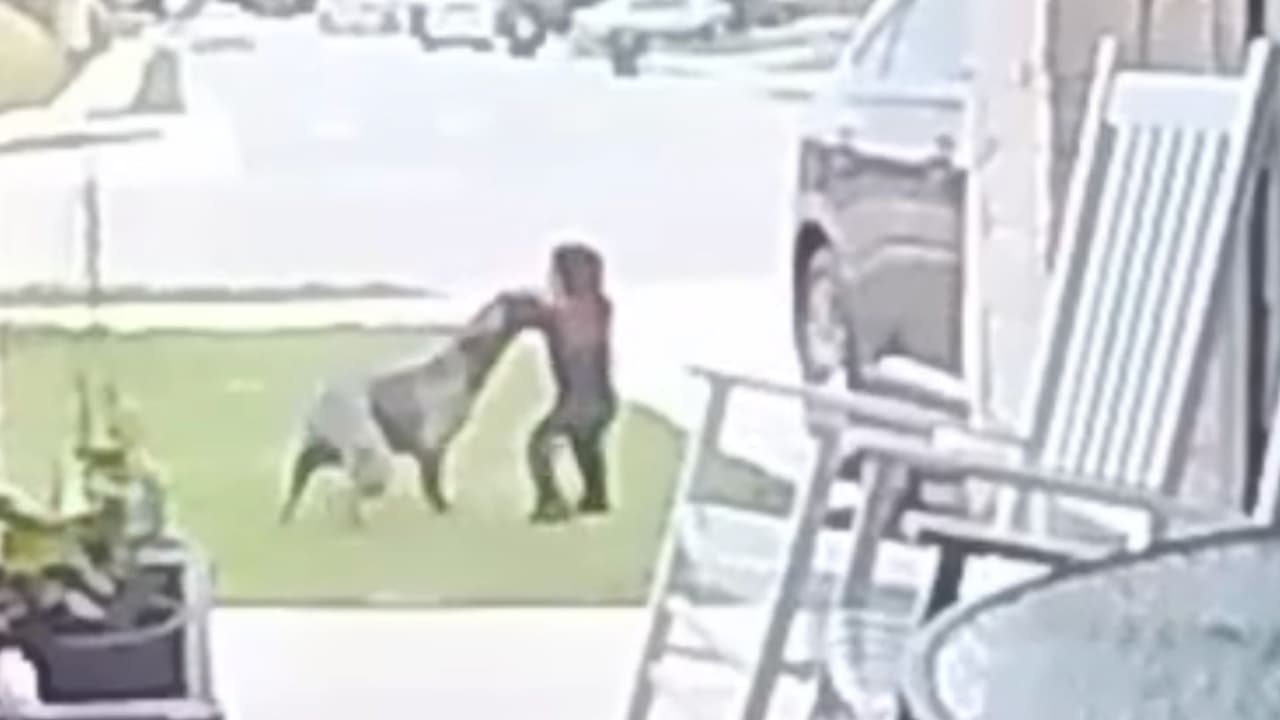 Un video y varias fotografías compartidas de Wright y captadas por su cámara de seguridad, muestran cómo un perro tipo pitbull de color gris ataca al niño de 2 años cuando iban a subirse a un vehículo.