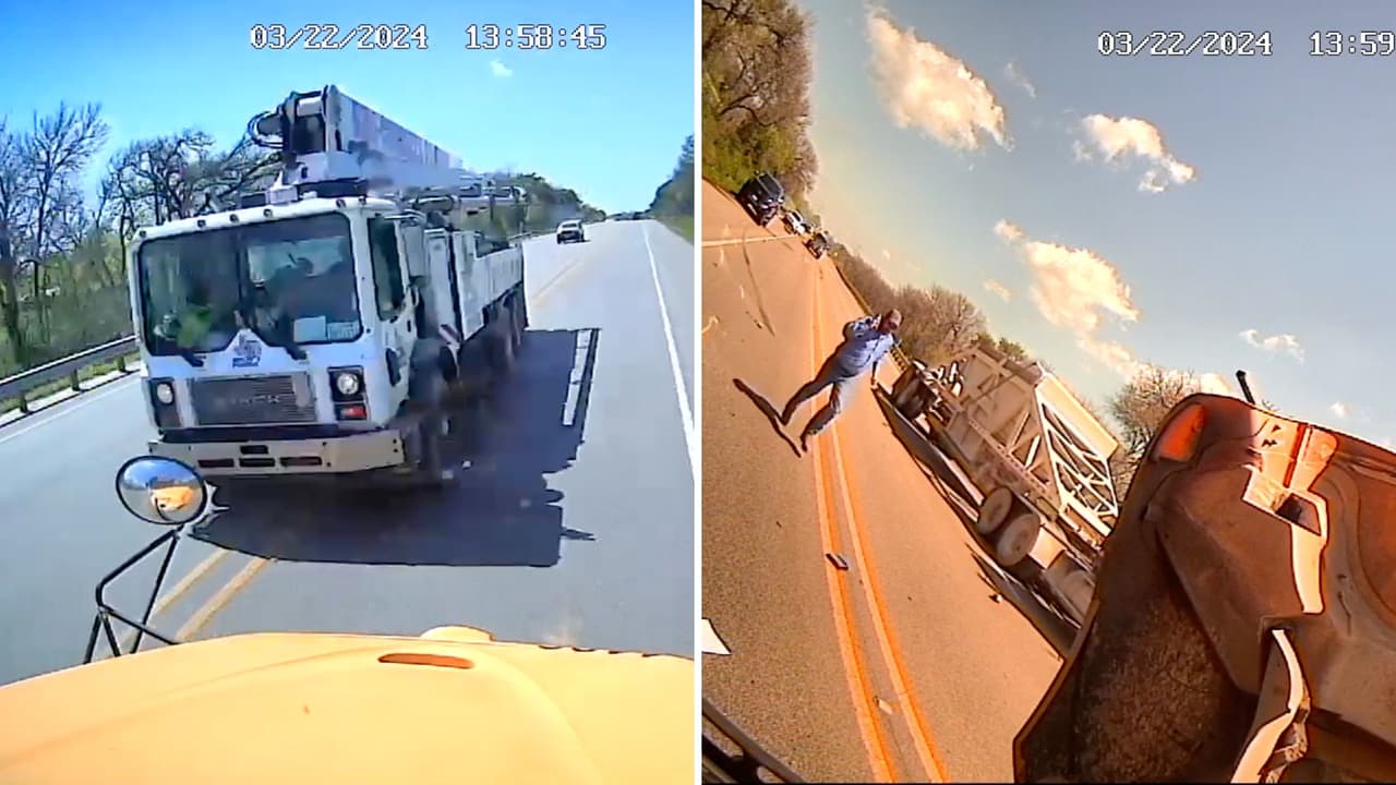 En el incidente del 22 de marzo, el sospechoso se metió al carril contrario donde iba un autobús escolar con 44 niños y lo chocó de frente. Un video muestra lo que ocurrió.