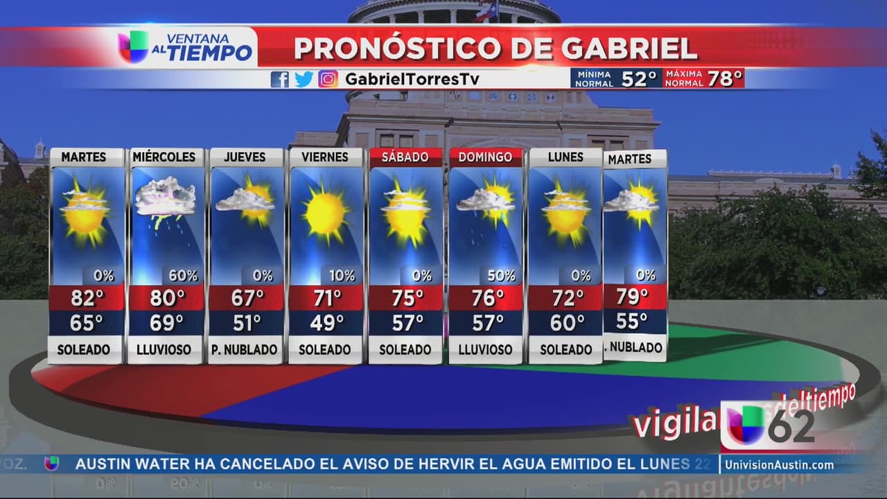 Un inicio de semana con temperaturas agradables, para este martes se esperan máximas de 82 grados y mínimas de 65, precaución para el miércoles las posibilidades de lluvia aumentan considerablemente.
