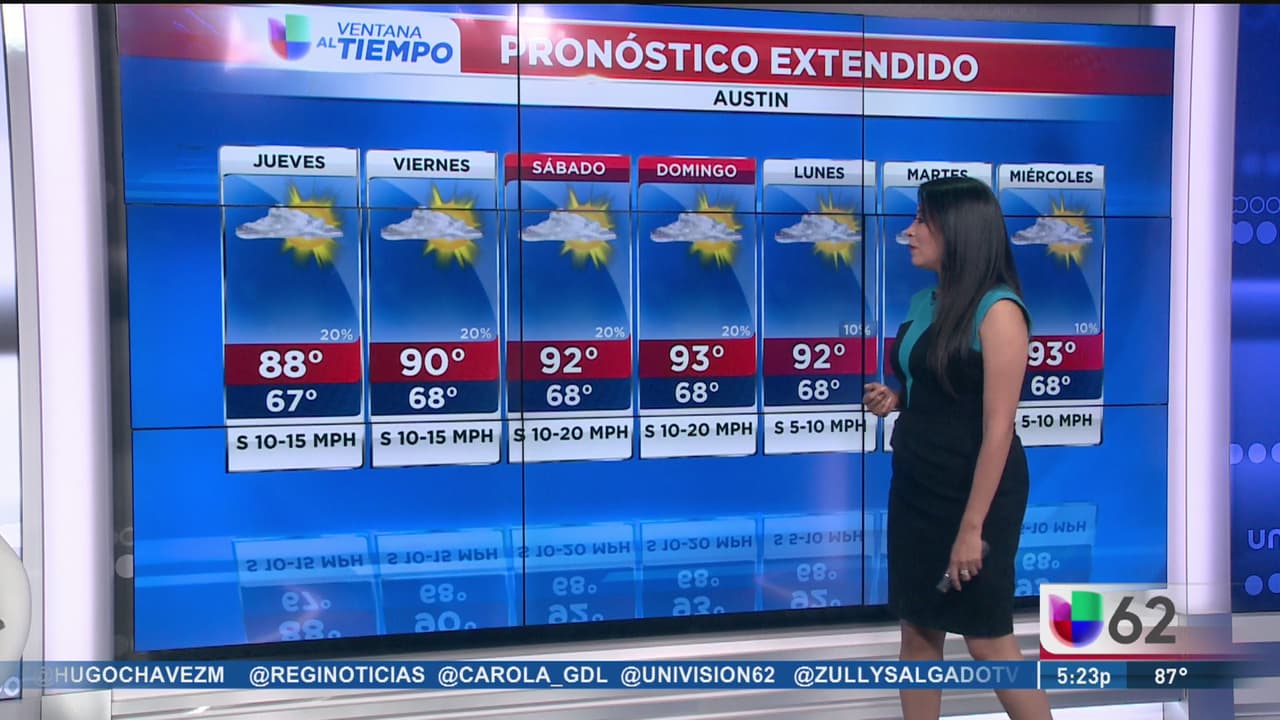 Un miércoles con cielos despejados y con temperaturas máximas de 88 grados, para mañana jueves existe un 20 por ciento de probabilidades de lluvia, pero el termómetro estará por encima de los 80 grados.