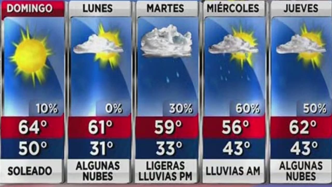 Para este día se esperan condiciones mayormente soleadas con temperaturas máximas en el rango de los mediados 60 grados.