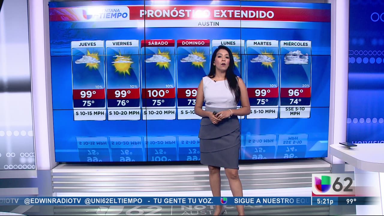Probabilidades del 10 por ciento de lluvia en Austin con temperaturas máximas de 90 grados y mínimas de 75.