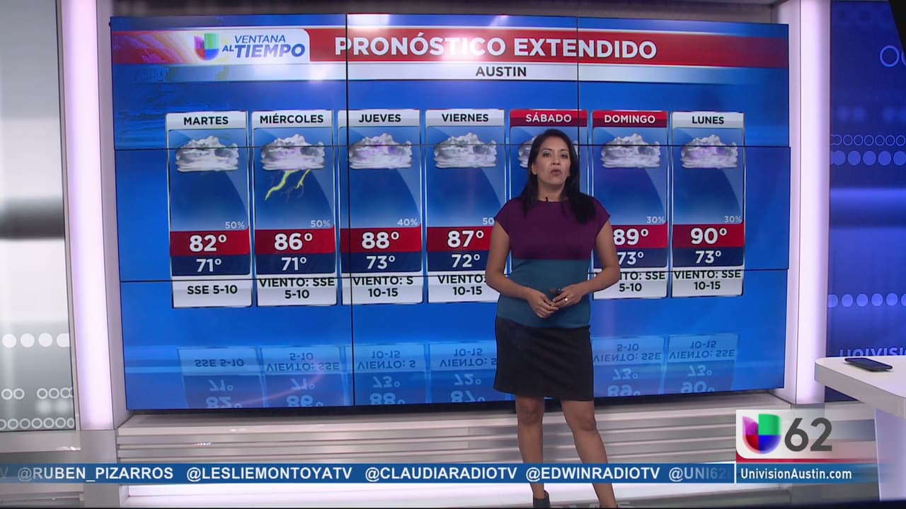 Fuertes lluvias hacia el oeste y cielos mayormente nublados hacia el norte del área metropolitana, además de nubosidad abundante en el área de Austin con lluvias y tormentas aisladas para el martes por la tarde.