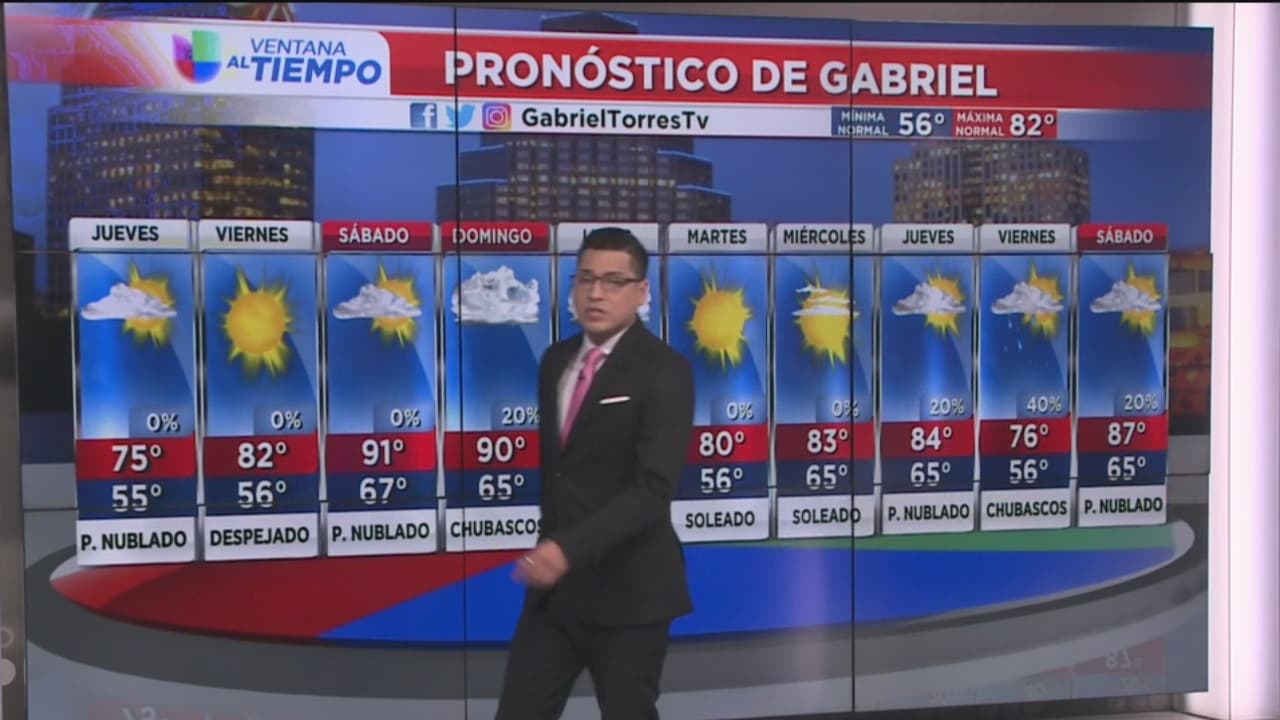 Predominan los cielos nublados y se prevé que este jueves sea el día más frío de la semana, se espera que el termómetro alcance una temperatura máxima de 75 grados Fahrenheit y una mínima de 55 grados.