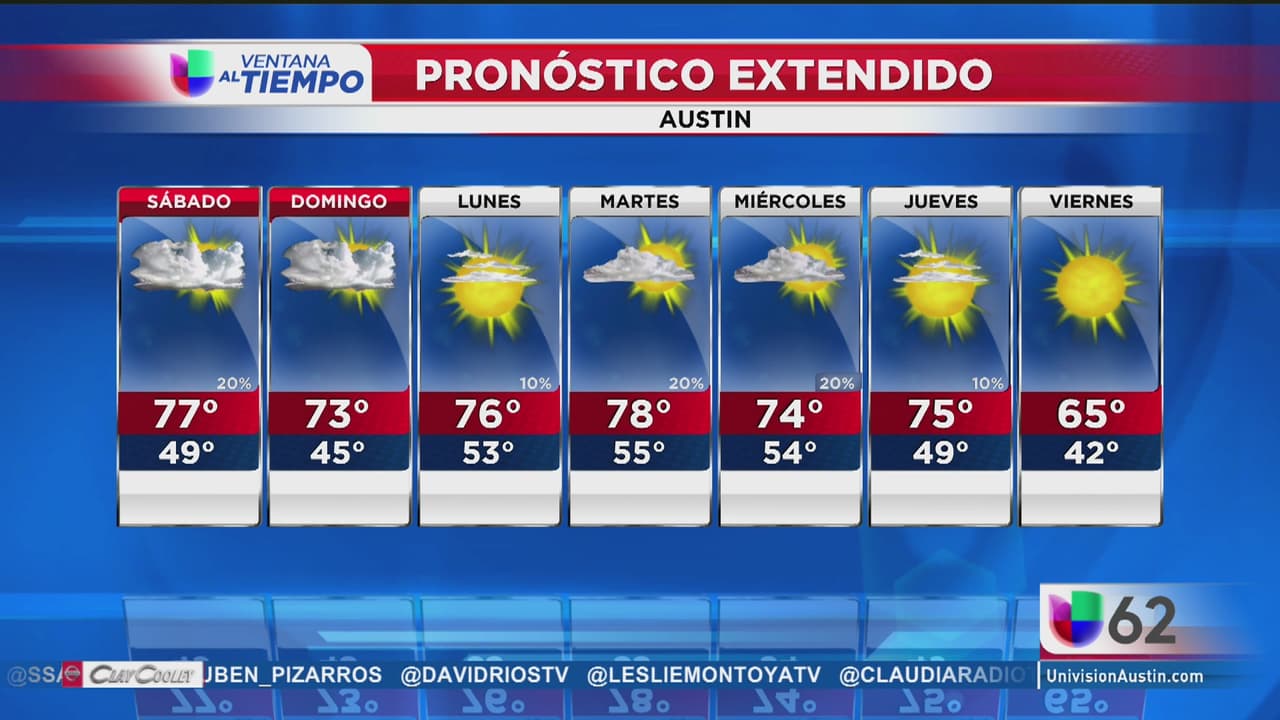 Cielos parcialmente despejados y condiciones frescas en Austin para este sábado