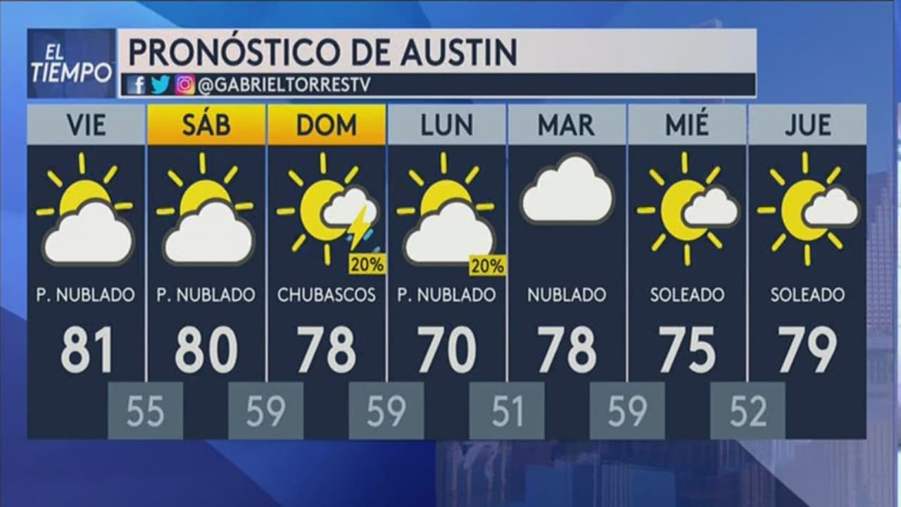 Cielos parcialmente nublados y posibilidad de lluvia se mantiene latente para Austin