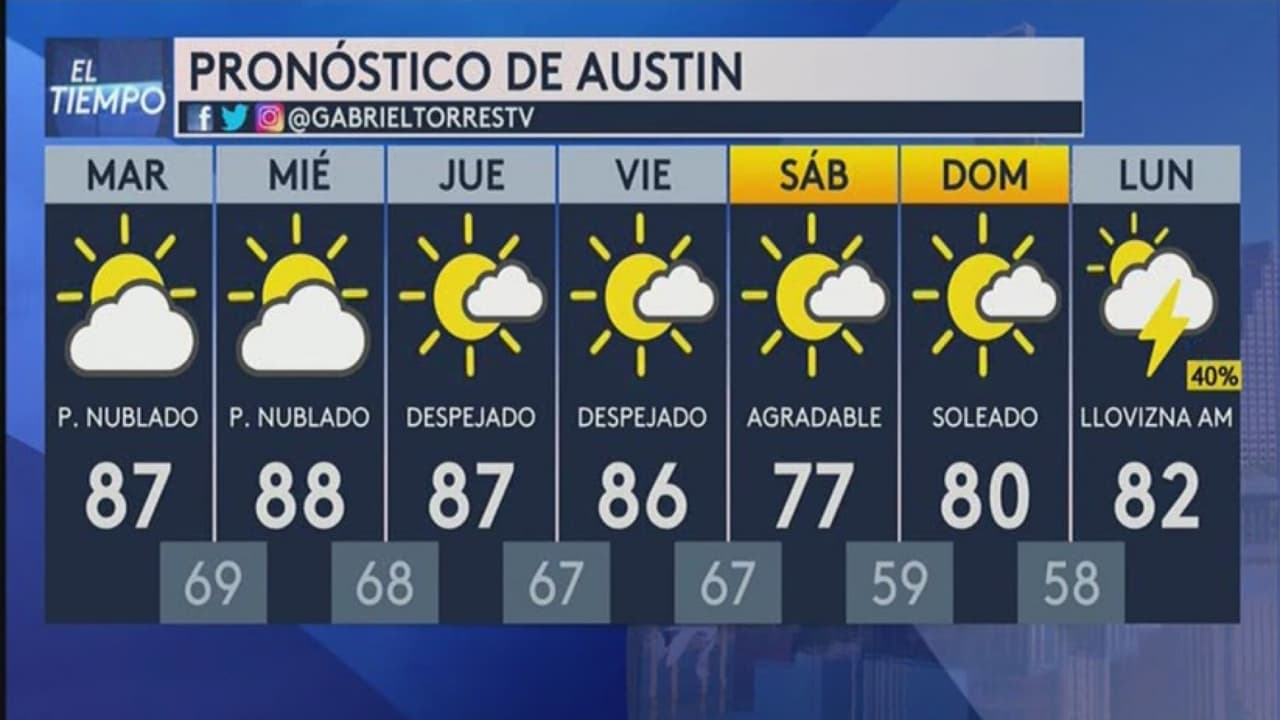 Condiciones parcialmente nubladas con temperaturas cálidas en Austin