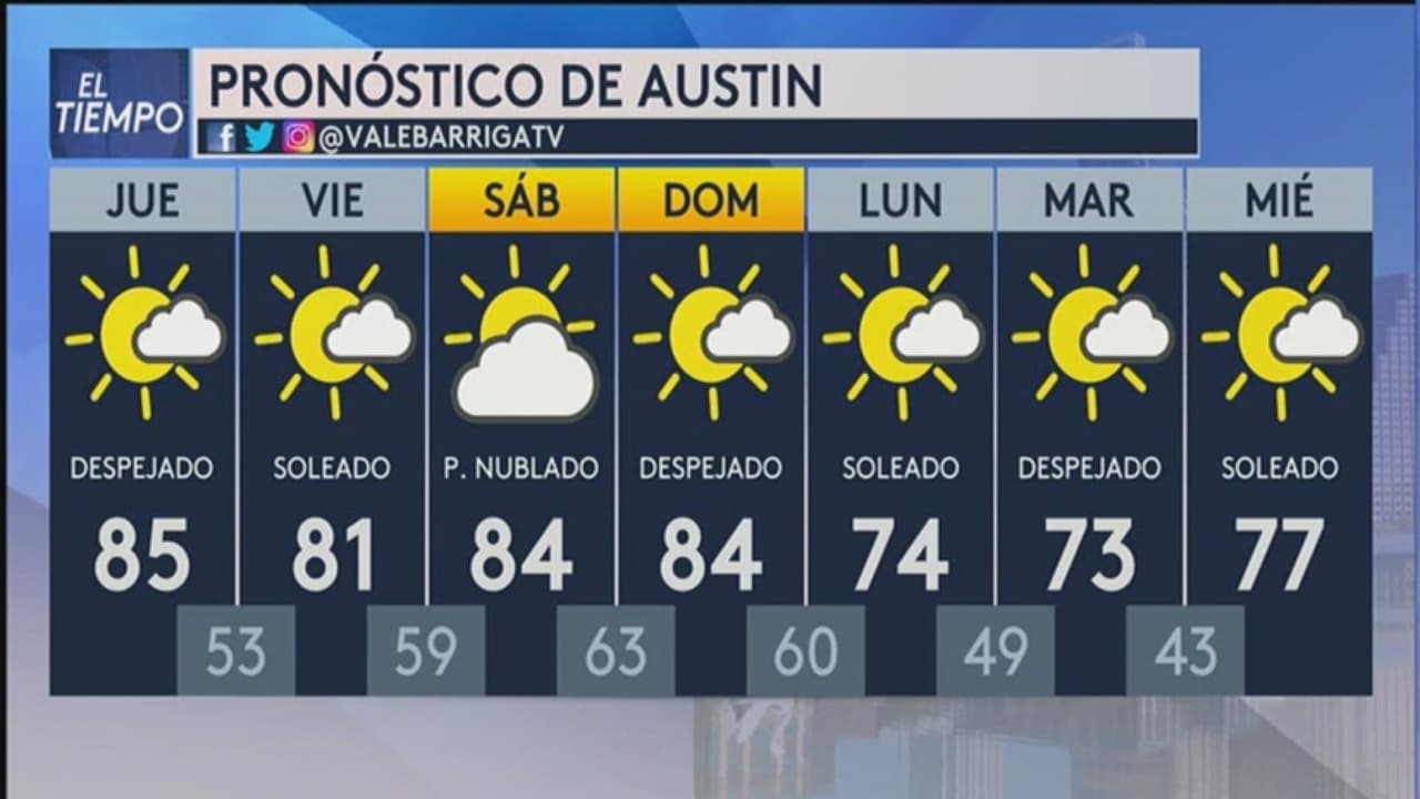 Prepárese para un día sin posibilidad de lluvia y con cielos despejados en la capital texana con temperaturas máximas de 85°F. Para la próxima semana comenzará a bajar el mercurio en la región.