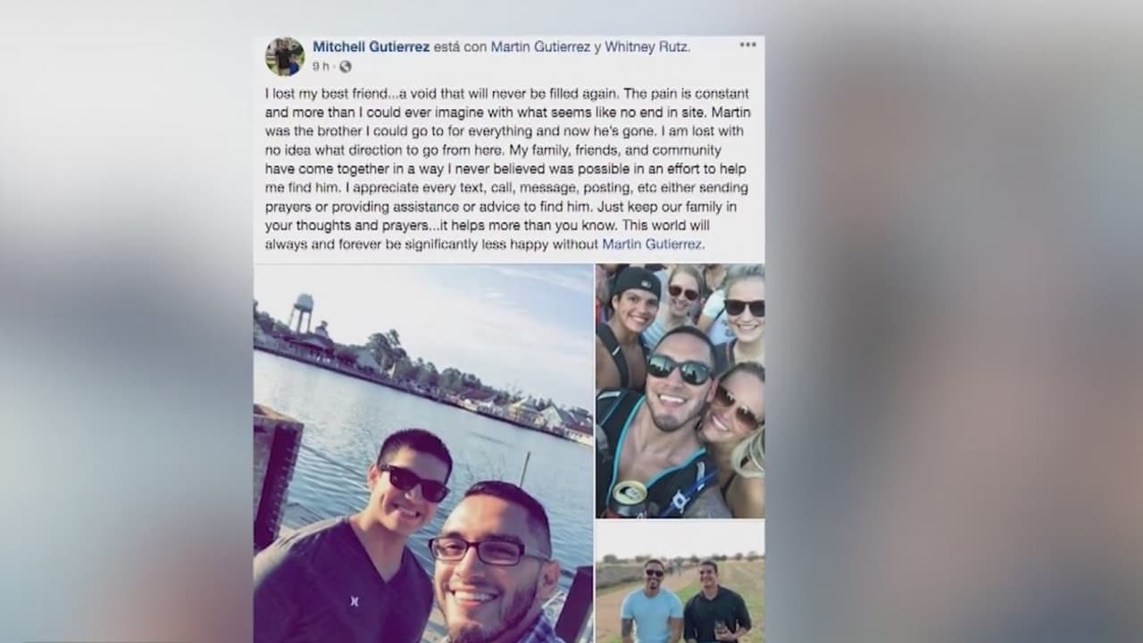 Autoridades confirmaron que el cuerpo corresponde a Martin Gutierrez, quien había sido reportado como desaparecido la semana pasada. Sus amigos y familiares compartieron su dolor a través de las redes sociales.