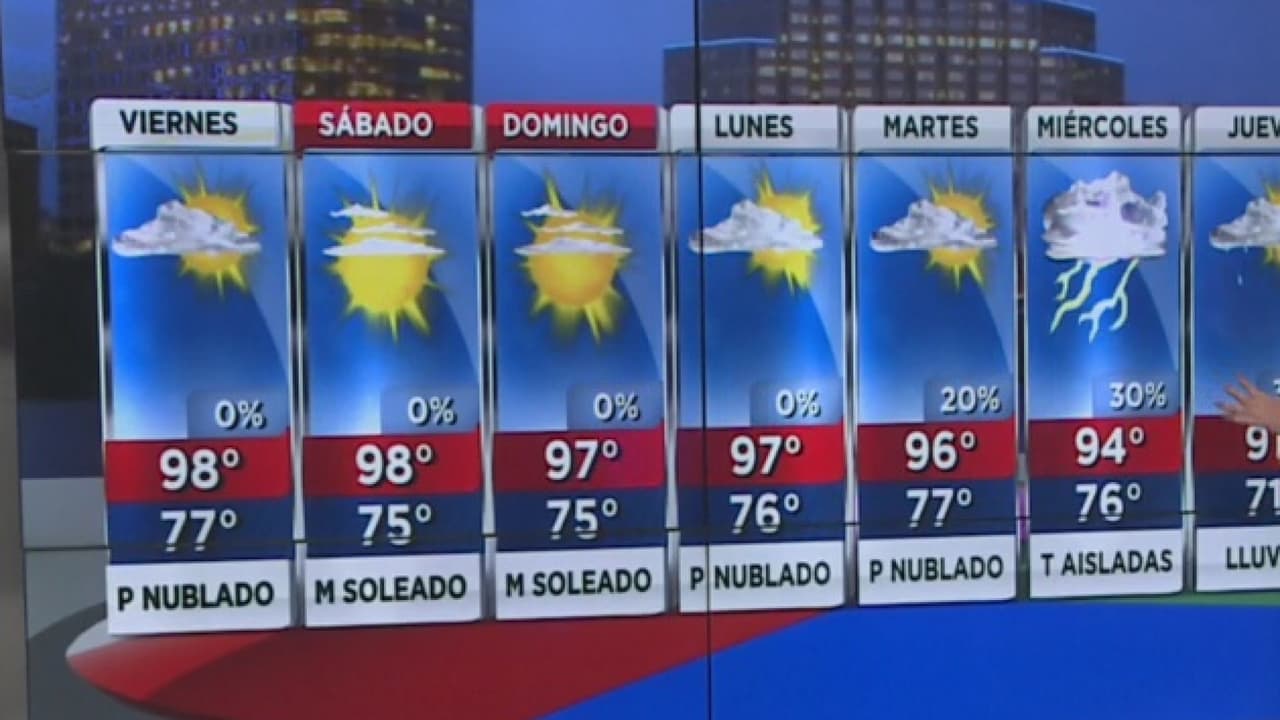 ¡Mantente hidratado y viste colores claros! Las nubes bajas darán paso a un clima mayormente soleado y caluroso en la tarde de este viernes con índices de calor que llegarían hasta los tres dígitos, según informó el Servicio Nacional de Meteorología.