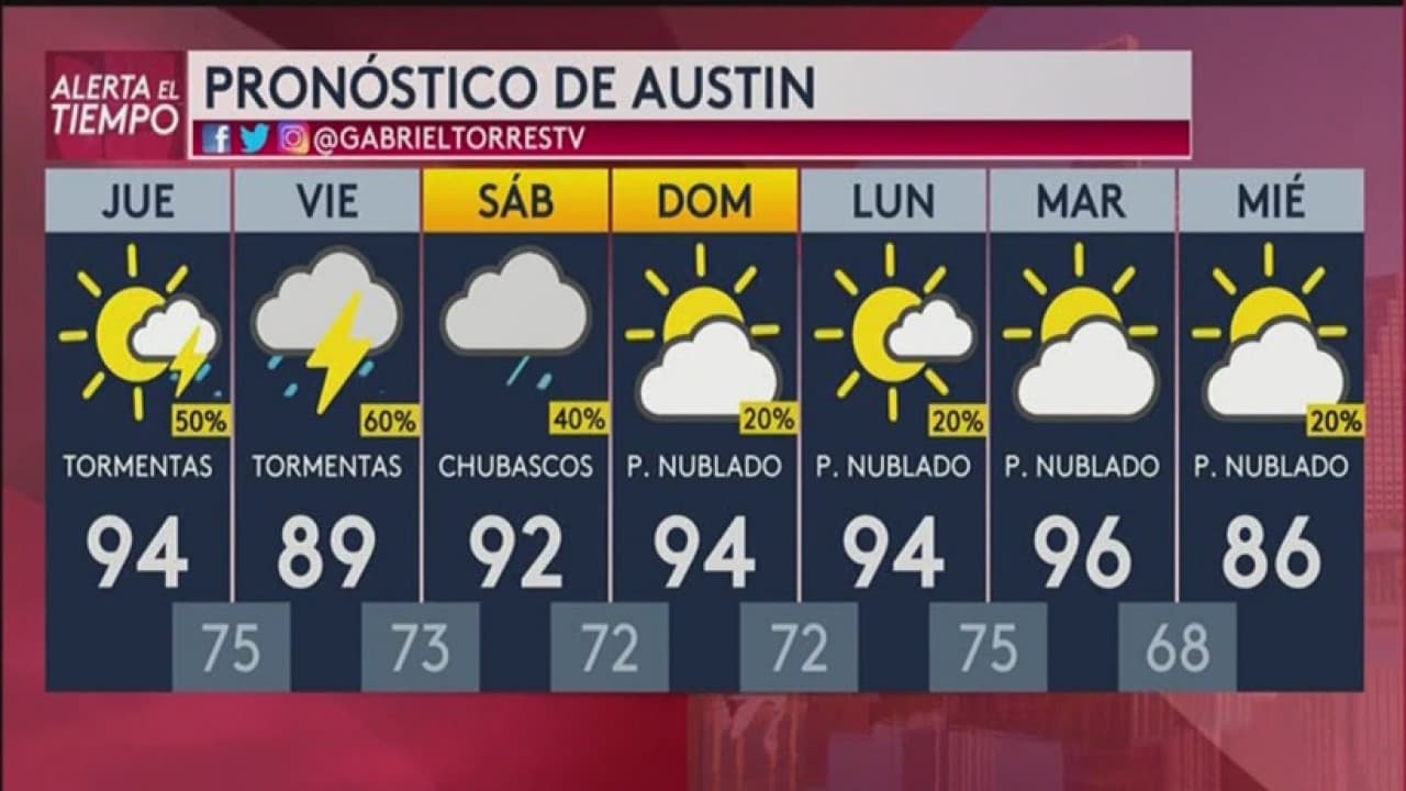 El modelo meteorológico indica altas probabilidades de precipitaciones durante el resto de la semana laboral, con temperaturas en el rango de los bajos 90 grados.