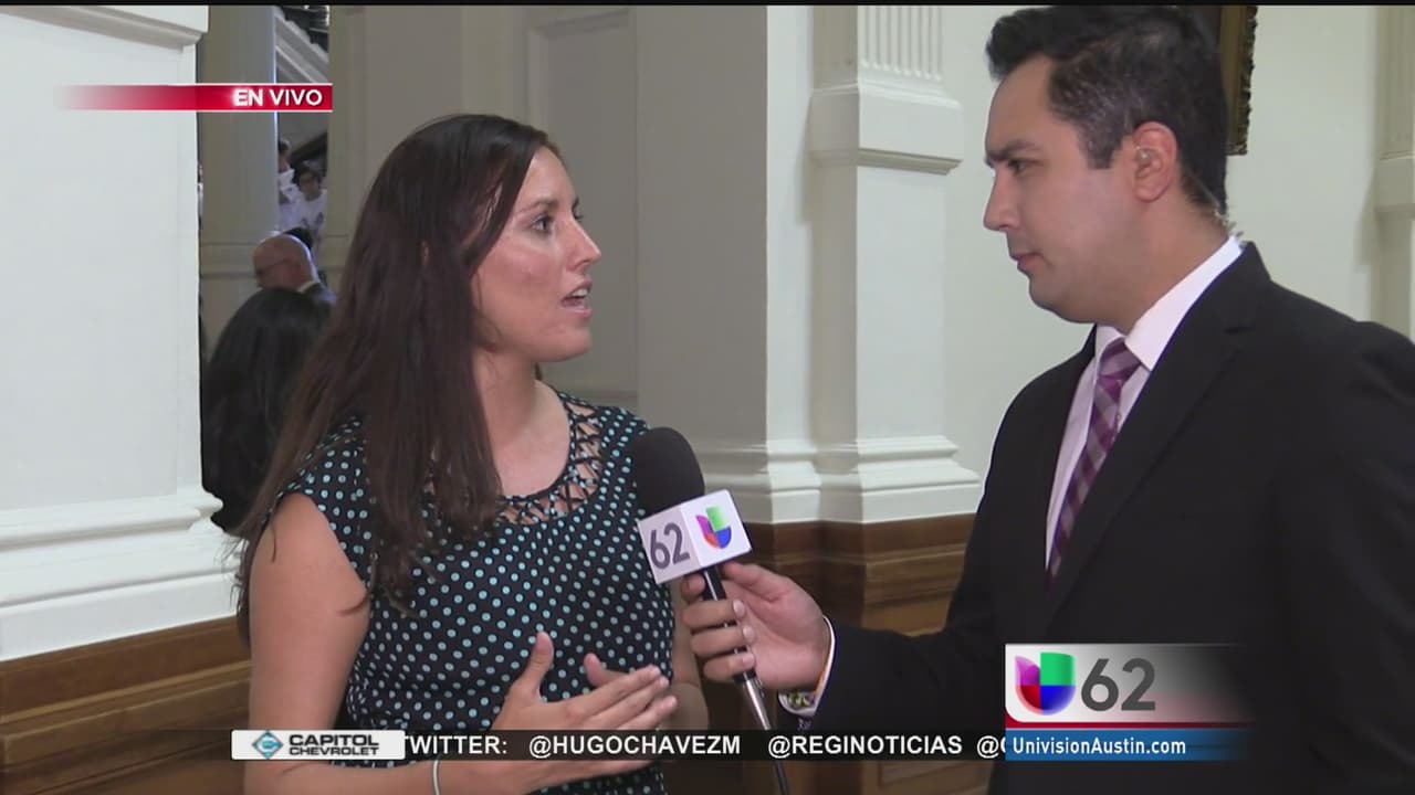 Cristina Tzintzun de la organización Jolt habla del impacto de la iniciativa SB4 para las familias inmigrantes de ser aprobada en el congreso estatal.