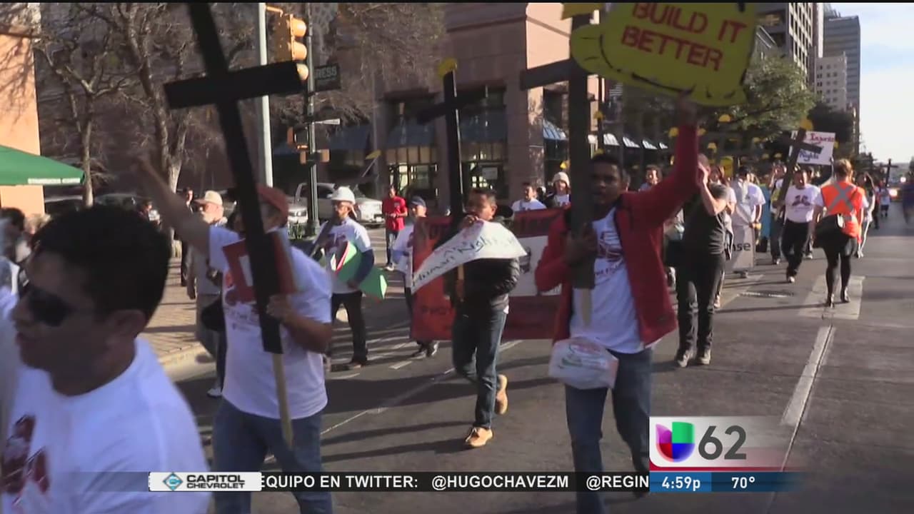 Familiares y seres queridos de trabajadores que perdieron la vida en proyectos de construcción marcharon hacia el capitolio exigiendo mayores medidas de seguridad en los sitios de trabajo.