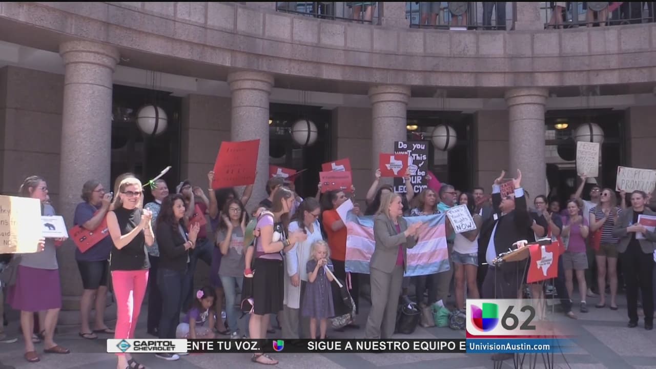 Residentes de distintas regiones de Texas llegaron al capitolio estatal para mostrar su inconformidad con la ley que regularía el uso de baños públicos a las personas transgénero.