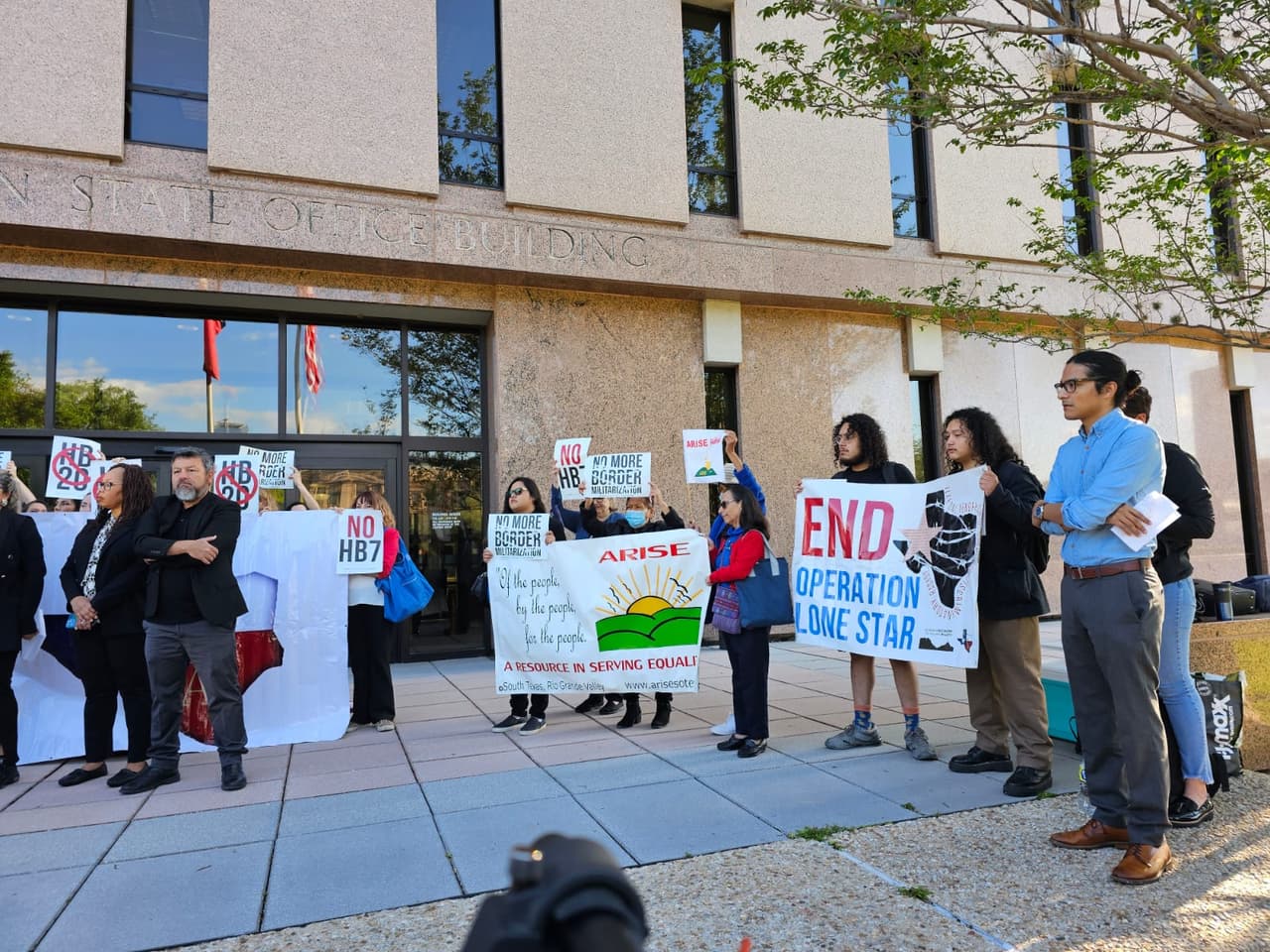 Austin, TEXAS - Hoy desde el Capitolio de Texas se reunieron en modo de protesta varios defensores de inmigrantes y de la frontera junto a organizaciones de derechos civiles, para pedirle a la Cámara de Representantes oponerse a dos proyectos de ley que han catalogado como "profundamente peligrosos" para las personas inmigrantes.
