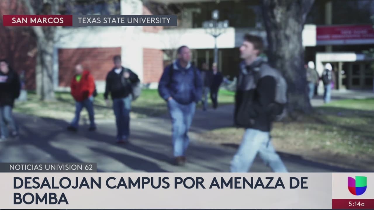 El Campus San Marcos de la Universidad estatal de Texas reportó que tras haber recibido una amenaza de una bomba en sus instalaciones, evacuó 5 edificios del plantel. Tras una revisión se descartó algún peligro y todos los alumnos volvieron a clases de manera regular.