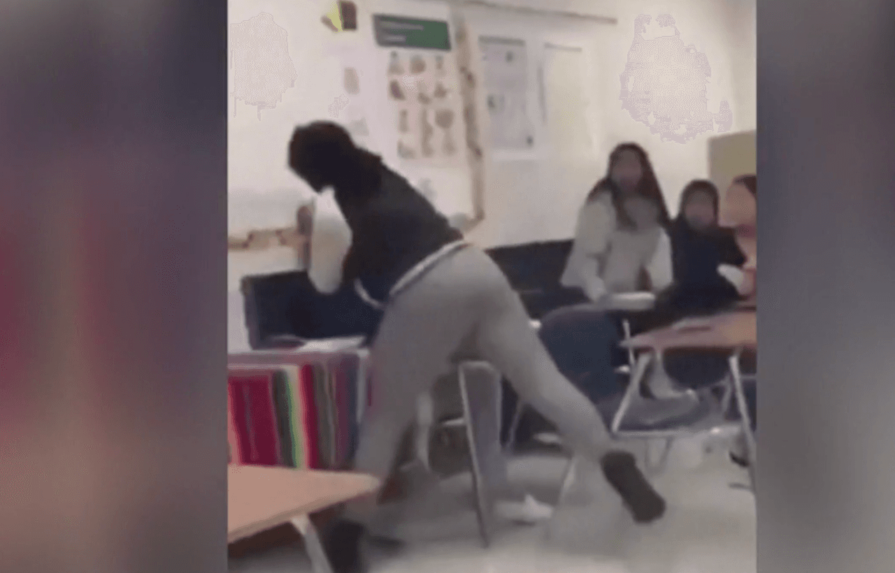 Un alumno que se encontraba en el salón de clase capturó el incidente en video que se ha hecho viral en las redes sociales. La maestra se ve golpeando a la estudiante varias veces, sacándola de su escritorio y pisoteando su cabeza.